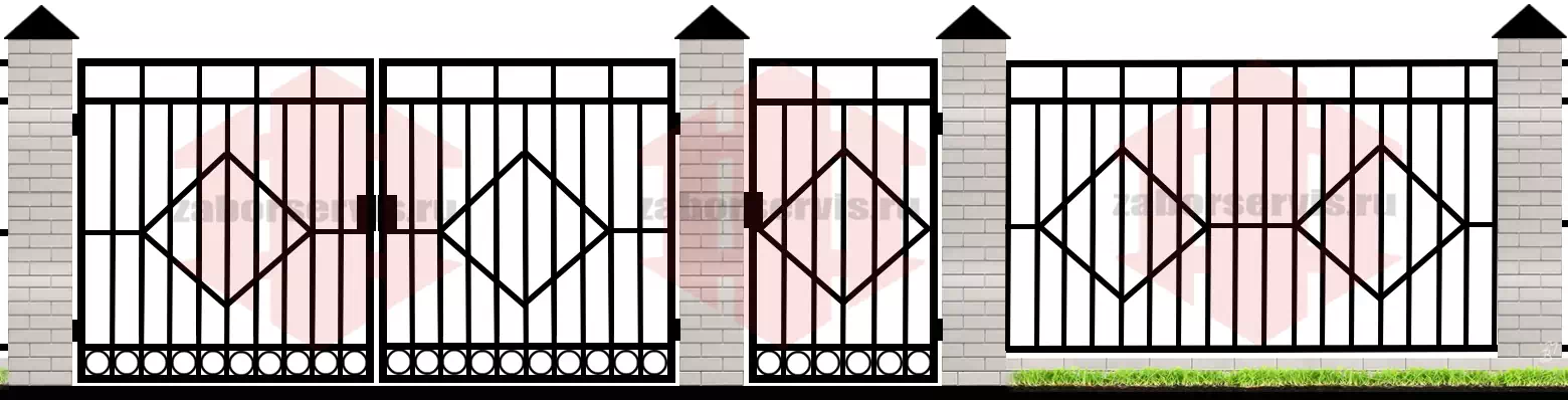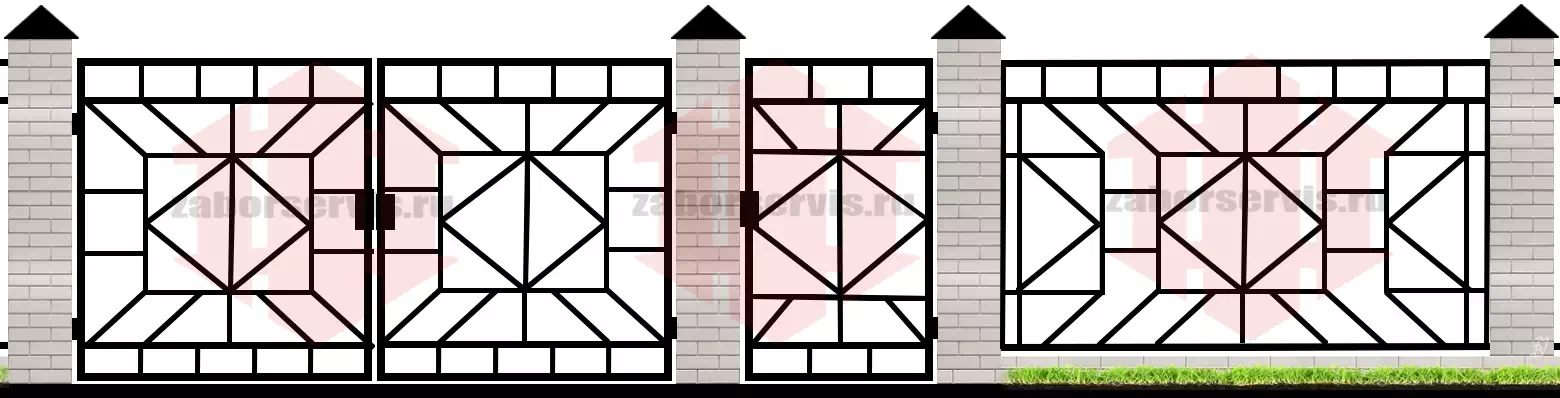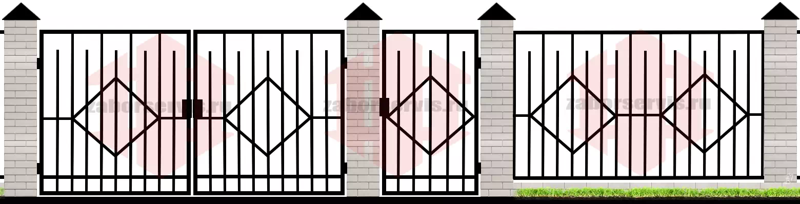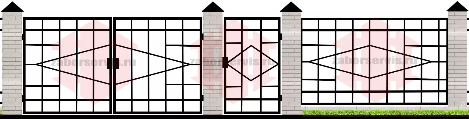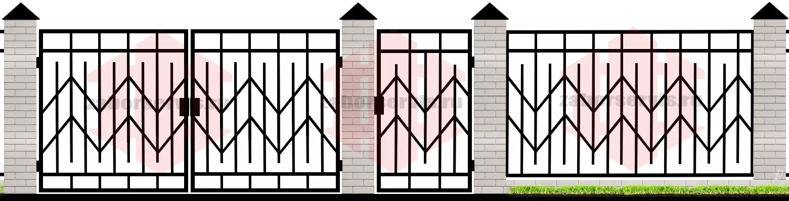 Забор из 3Д панелей ячейка 200х55 (на крашеных столбах 60x60)