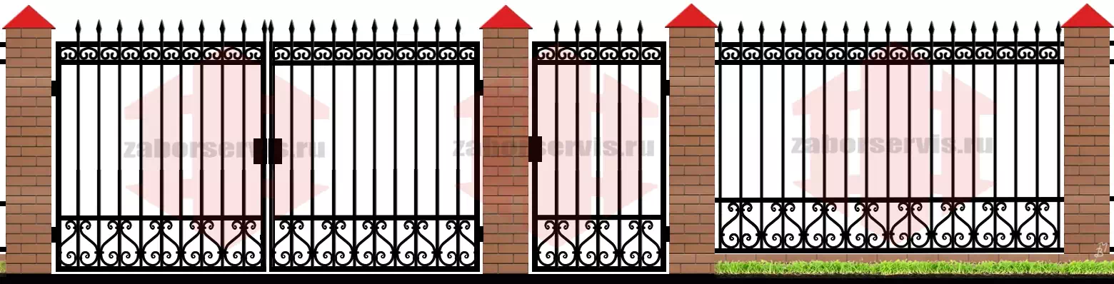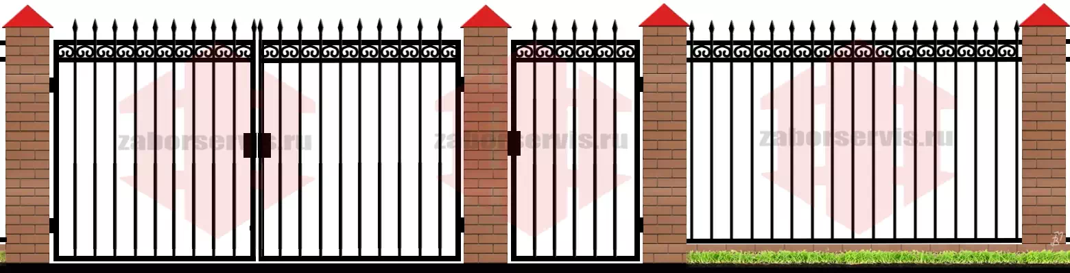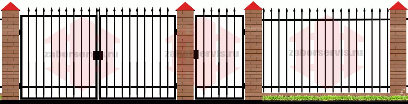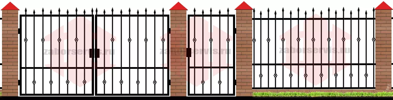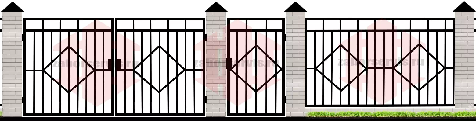 Забор из 3Д панелей ячейка 200х55 (на крашеных столбах 60x60)